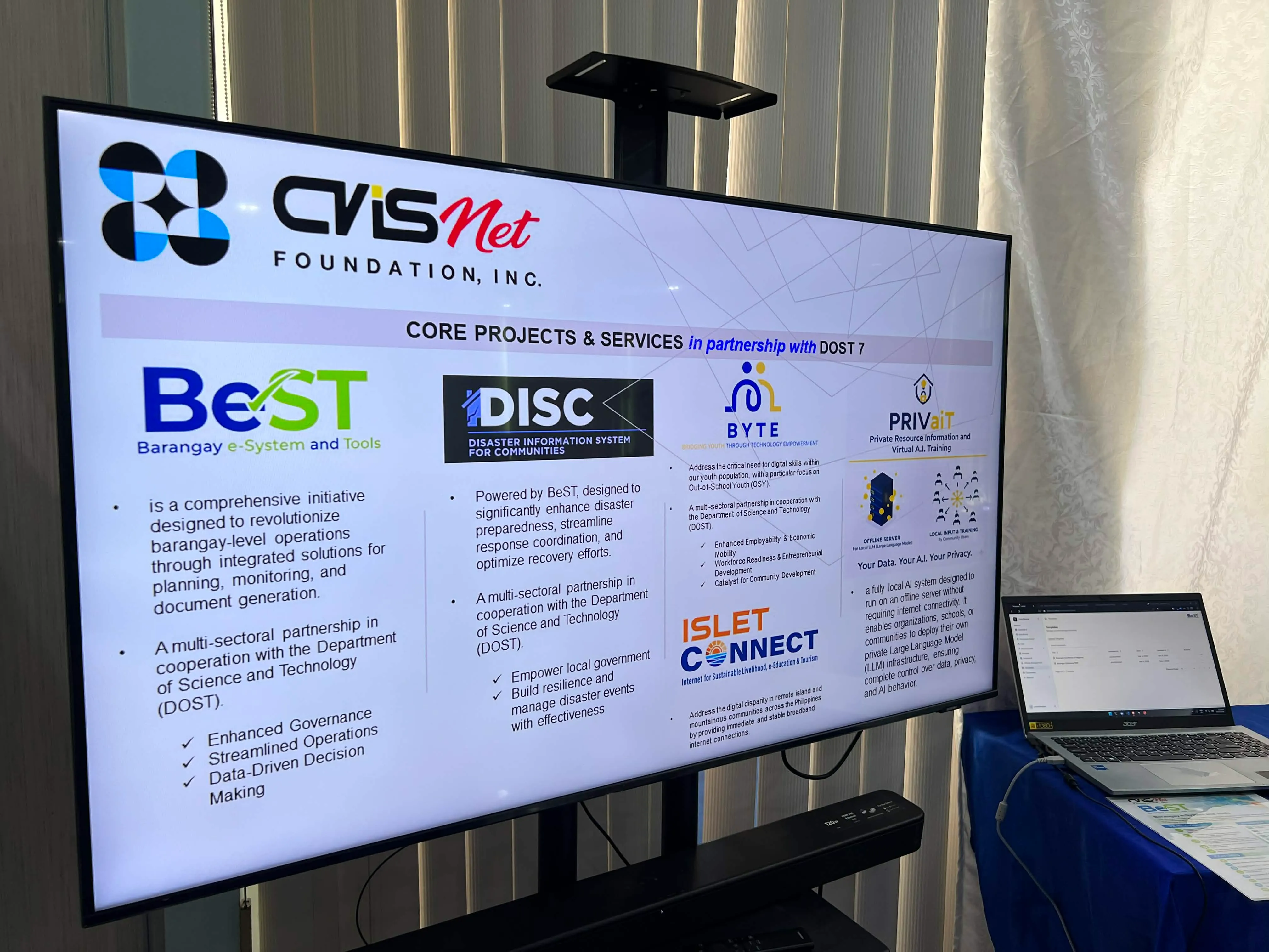 - Internet for Sustainable Livelihood, e-Education, & Tourism (ISLET Connect) – aims to address the digital disparity in remote island and mountainous communities across the Philippines, particularly in Central Visayas, by providing immediate and stable broadband internet connections.